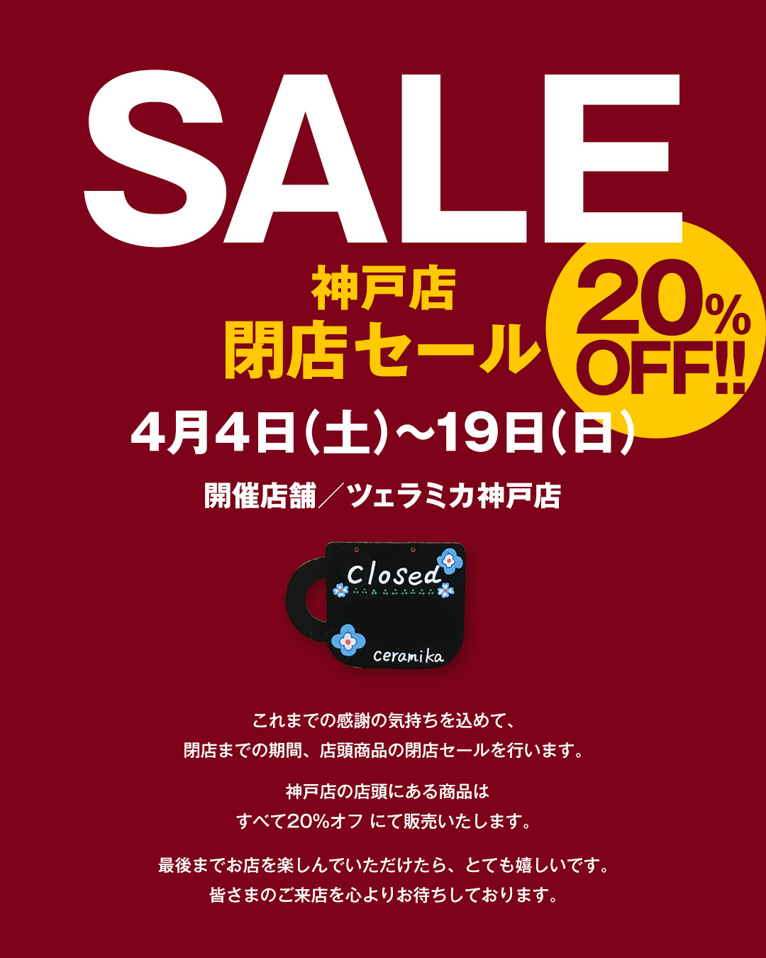 / 神戸店 閉店セールのご案内